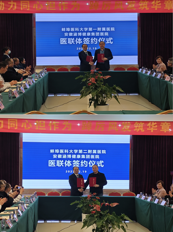 医联体建设是深化医药卫生体制改革、优化医疗资源配置的关键举措。12月19日,蚌埠医科大学第一附属医院、第二附属医院与安徽涵博健康集团医院合作签约暨蚌埠医科大学实践教学基地揭牌仪式在涵博医院成功举行。双方将以此次合作为契机,整合优质医疗资源,着力提升区域医疗服务能力与教学科研水平,切实惠及广大群众健康。
