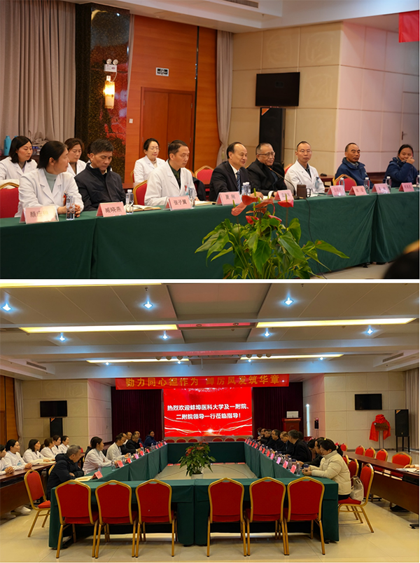 蚌埠医科大学党委书记朱立军带队出席,校院相关领导高恒、胡建国、熊韵波及专家团队一同莅临现场;安徽涵博健康集团医院院长孟庆海携医院核心业务骨干全程参与活动。
